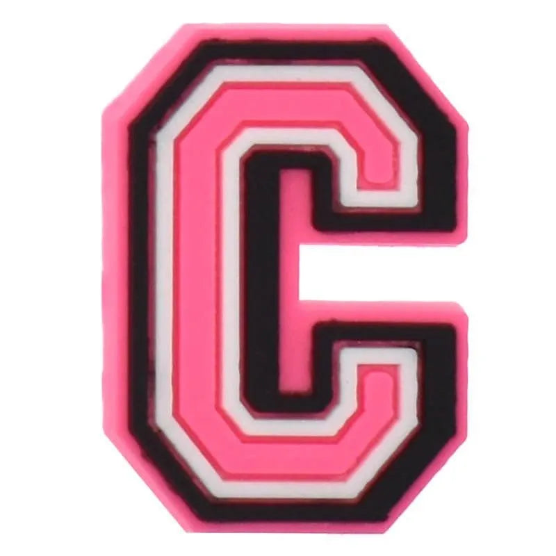 Shoe charm - A-Z LETTERS, Pink with Black frame
